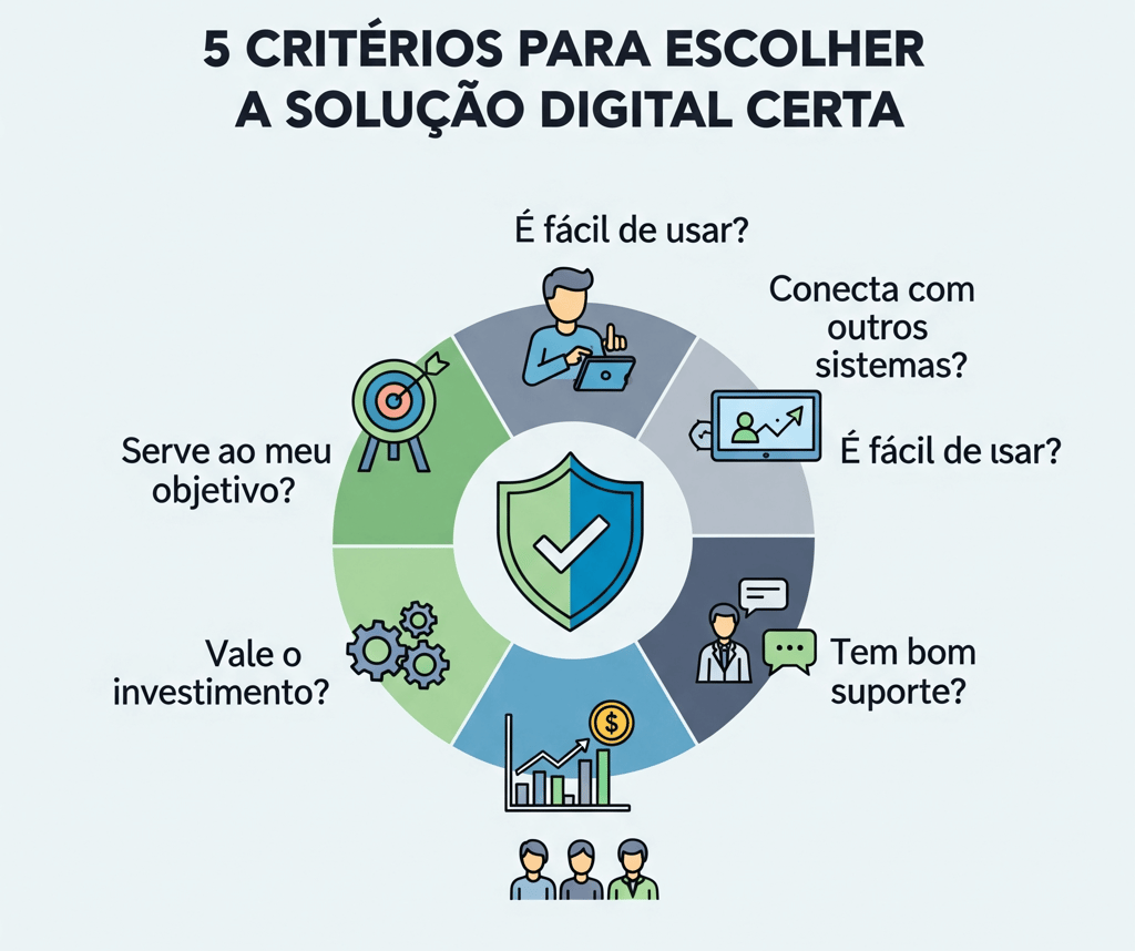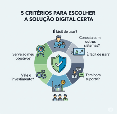 Descubra como escolher a solução digital certa para seu negócio. Aprenda 5 critérios essenciais, evite erros comuns e tome decisões com segurança.