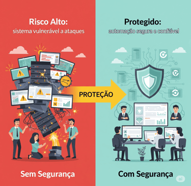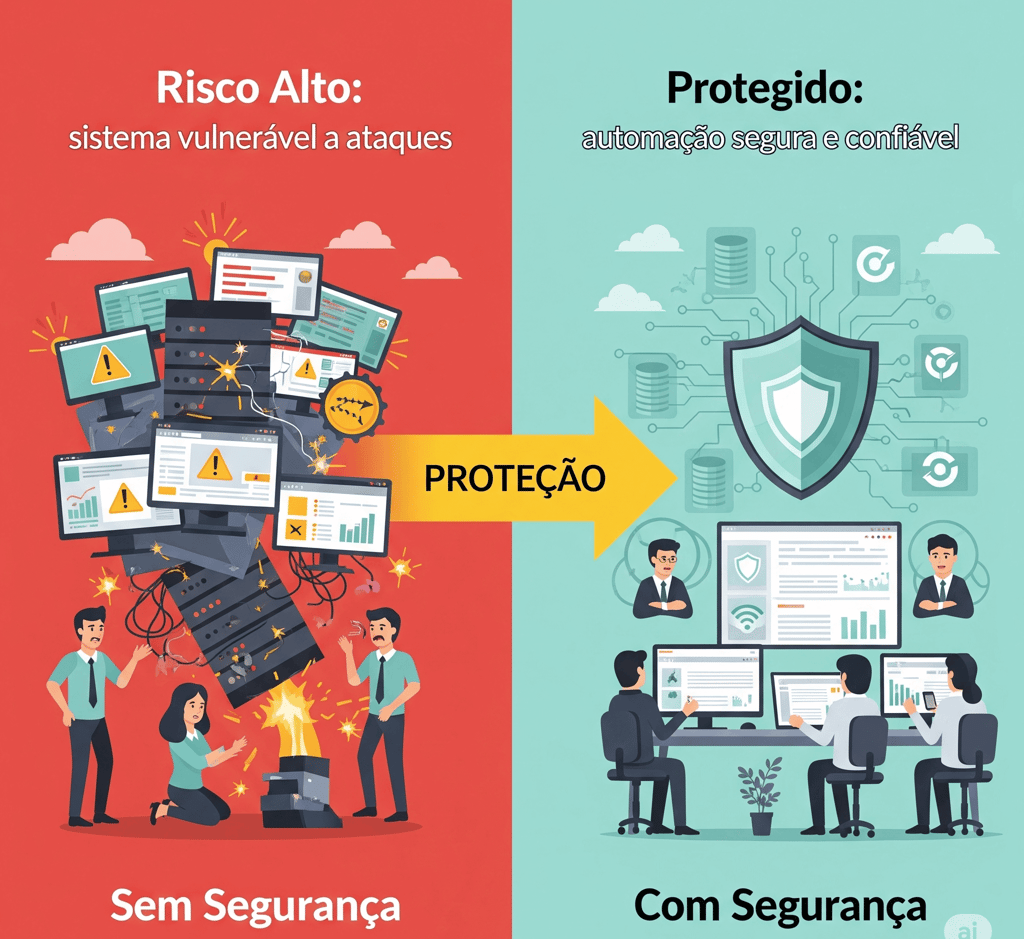 Descubra como manter sua empresa segura ao usar automação. Conheça os principais riscos e 5 práticas essenciais para proteger seus dados e processos.